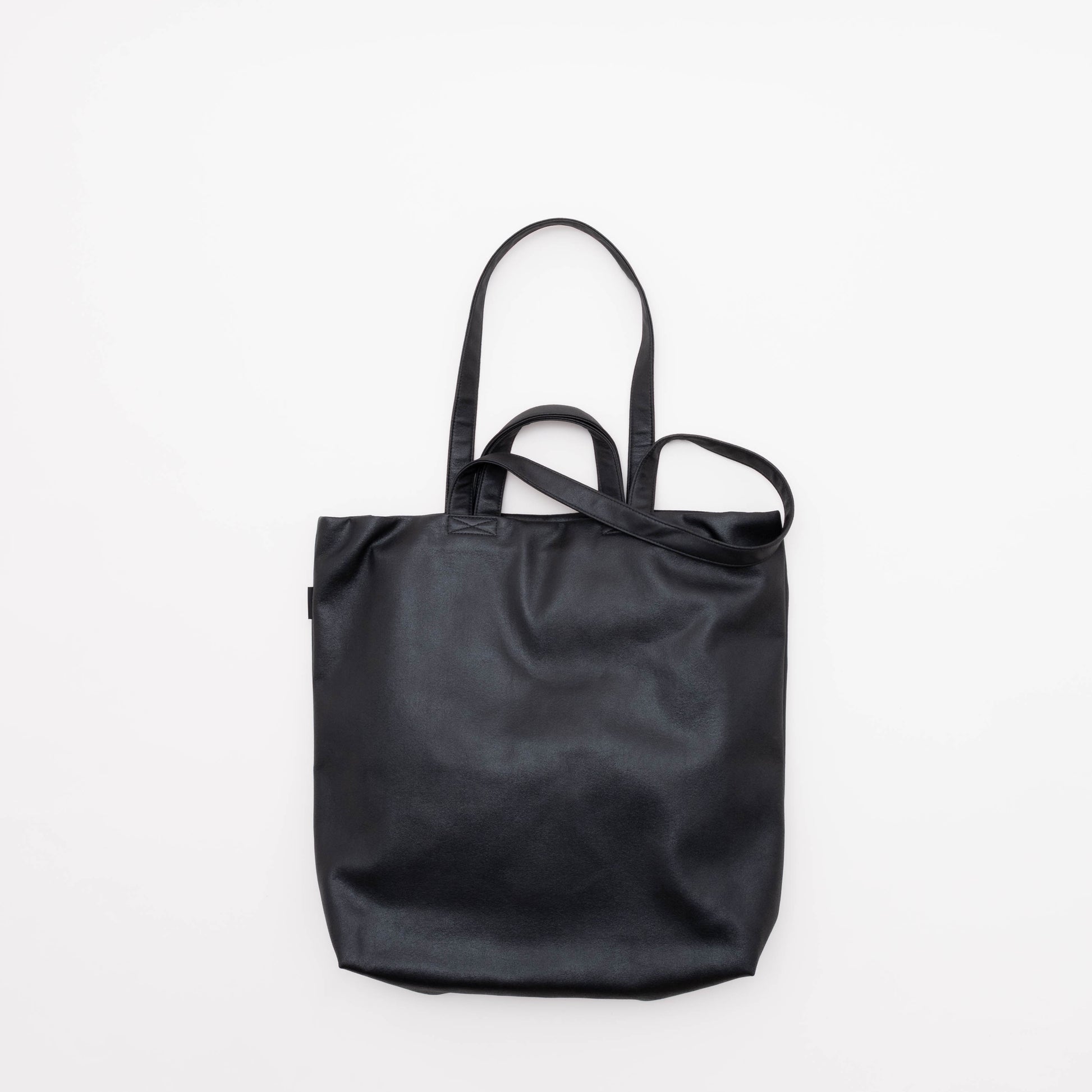 前後にクッション性のあるポケットを備えていますので、ノートパソコンやiPad、A4の書類などを分けて収納することができます。決して大袈裟なPCスリーブではないのでパソコンを入れていない時も自然に使えます。程よくボリュームのある2種類の持手は、重いものを入れても肩に食い込みにくく滑りにくいので安定して持ち歩くことができます。東レUltrasuede®︎に特殊な表面加工を施し、独特な光沢感とスエードタッチを両立した生地は、耐久性に優れメンテナンス性も高いです。